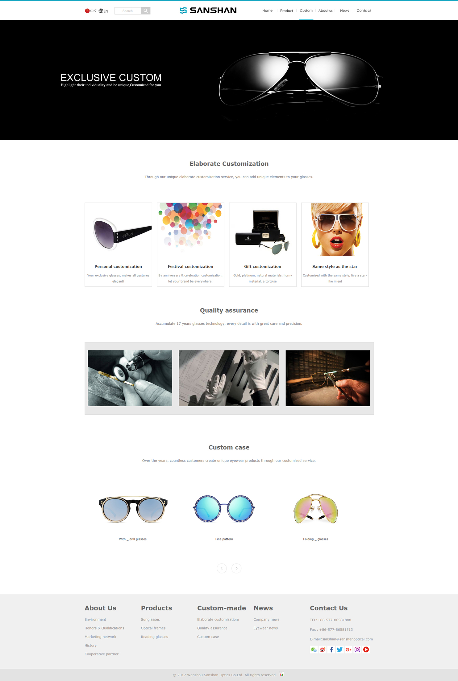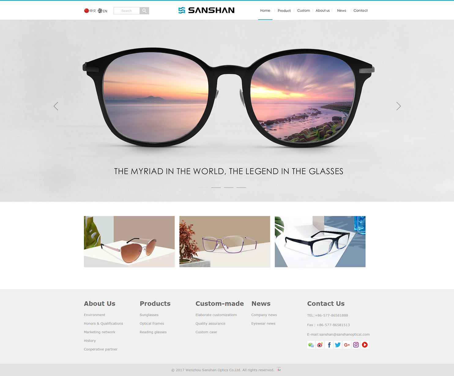 溫州三杉光學(xué)有限公司成立于1999年,是一家專業(yè)從事光學(xué)及太陽眼鏡設(shè)計(jì)、開發(fā)、制造和銷售的大型民營(yíng)企業(yè)。